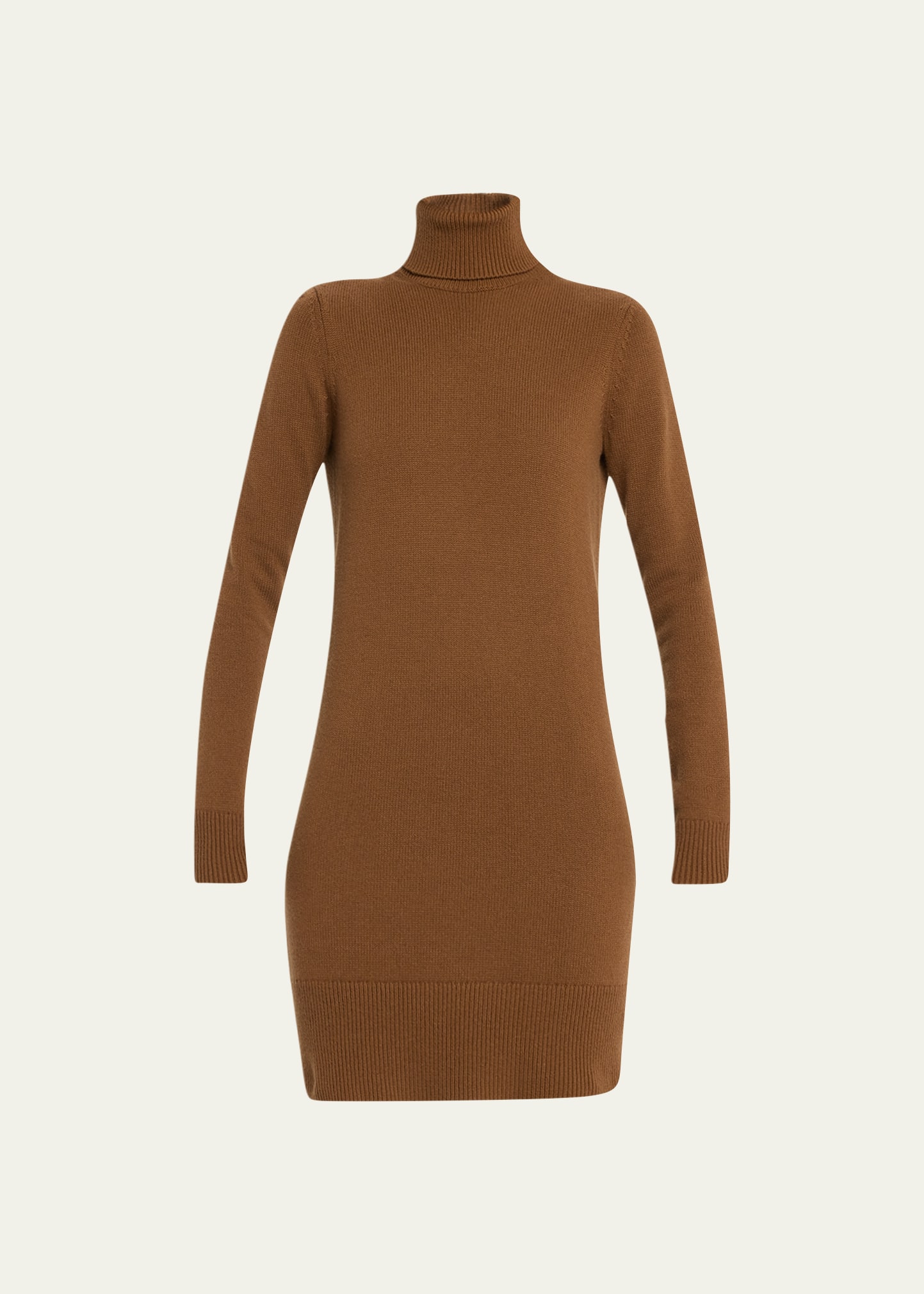 Michael Kors Collection "Kaia" knit sweater dress with ribbed trim Turtleneck Long sleeves Sheath silhouette Short length Slipover style Cashmere Dry clean Imported