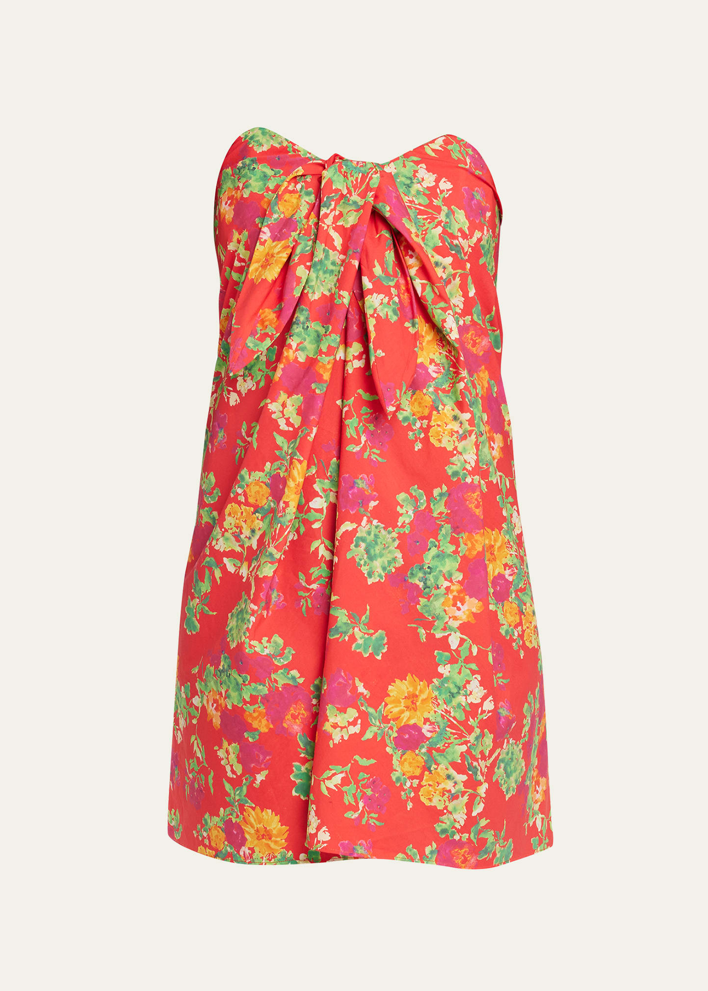 Caroline Constas "Kaia" floral-print dress with a decorative front tie Sweetheart neckline Sleeveless Internal bustier Shift silhouette Mini length Concealed back zip Cotton/polyester/elastane Dry clean Imported
