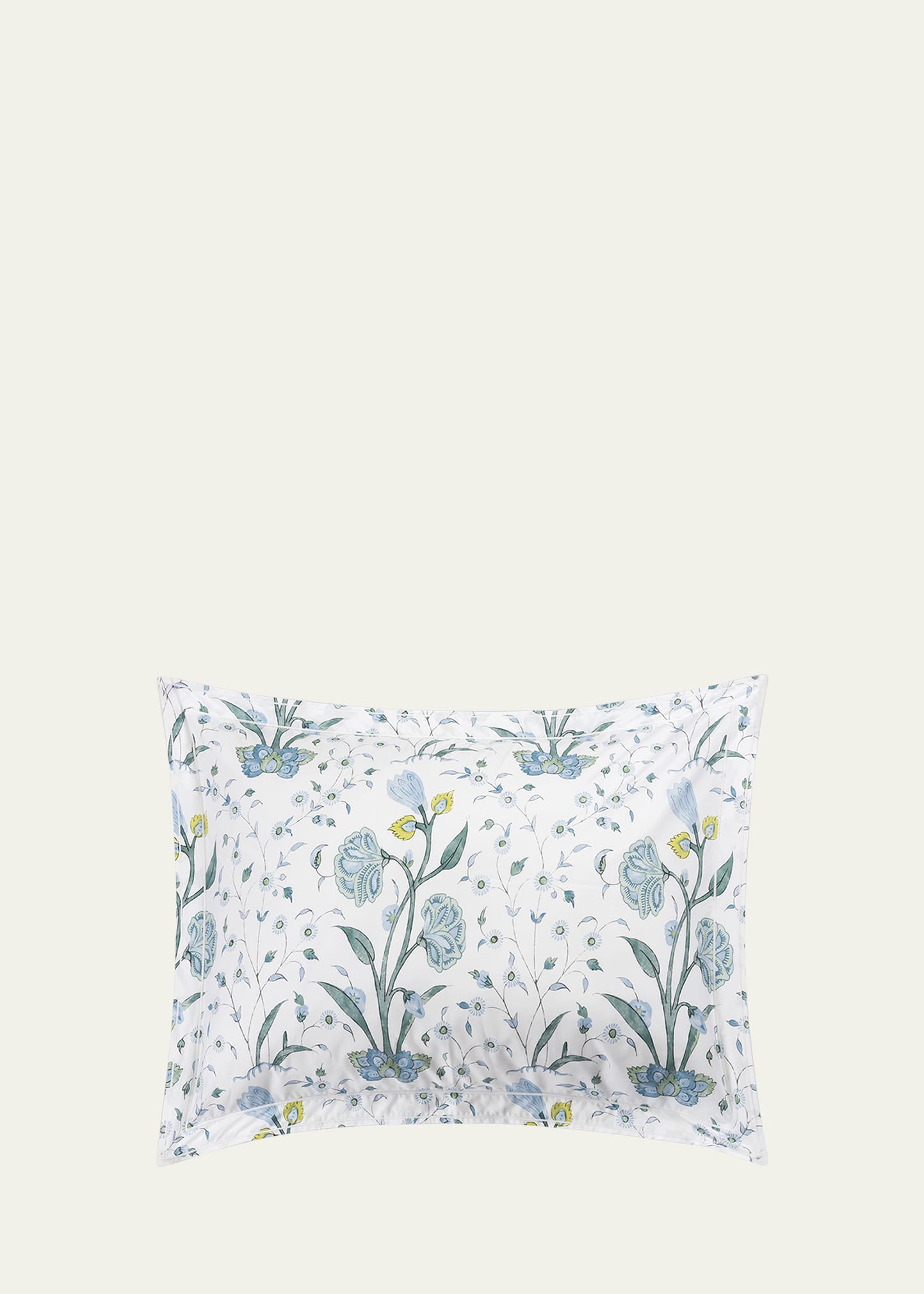 Khilana, a delightful, large-scale floral inspired by traditional Indian hand-block textiles, is a divine addition to the Matouk Schumacher collection It begins with our 500 thread count Egyptian cotton percale, printed in Italy in a refined blue colorway, and is finished in our Massachusetts factory, where we craft a flange with a unique double satin stitch along the outer and inner edges King sham is made of cotton percale Approx. 21"L x 36"W Machine wash warm Made in the USA from impo.