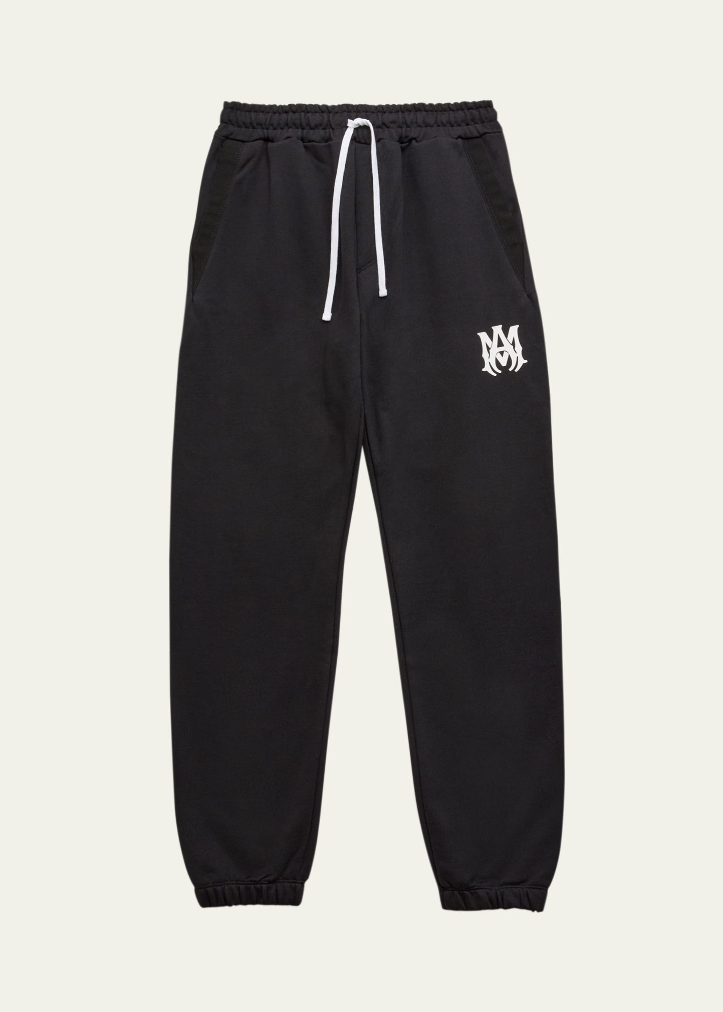 Amiri sweatpants with signature logo at front Elasticized drawstring waistband Side slip pockets Patch pocket at back Cropped at the ankle Easy fit Cotton Dry clean Made in Italy