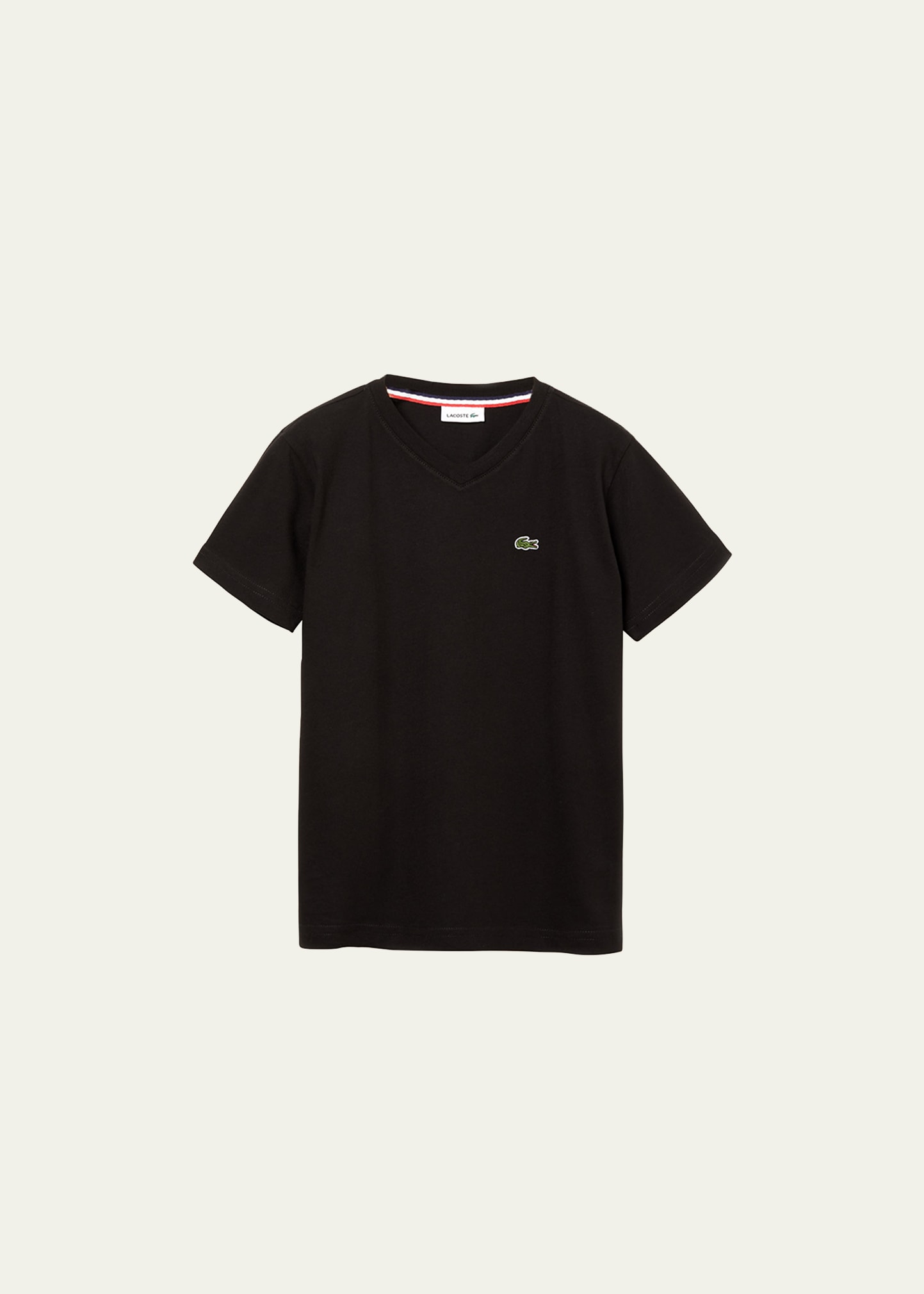 Lacoste T-shirt with signature embroidered crocodile at front V-neckline Short sleeves Pullover style Cotton Made in Peru
