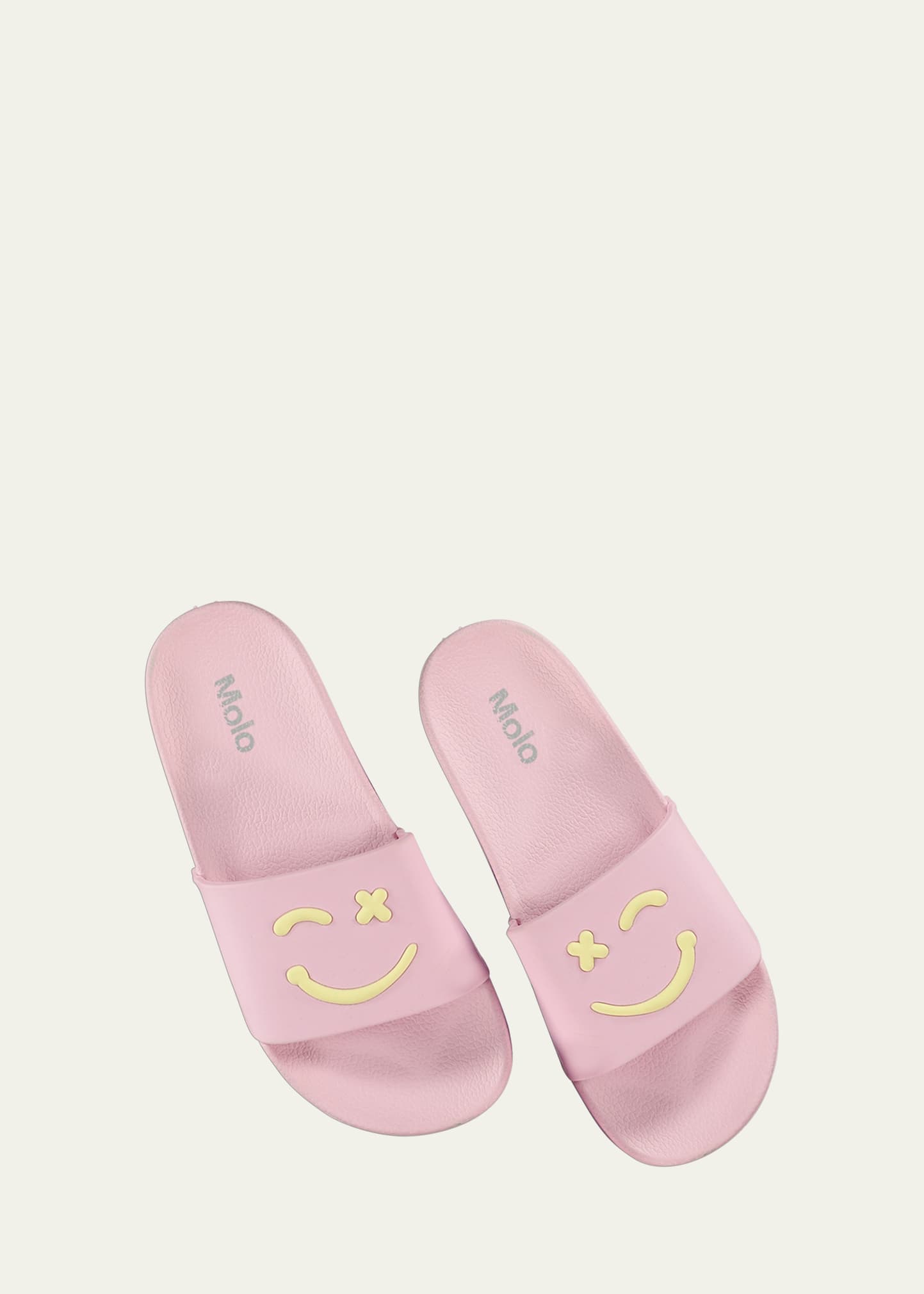 Molo PVC sandals with zhappy winky smiley accent Flat heel Open toe Single band vamp Slide style Imported