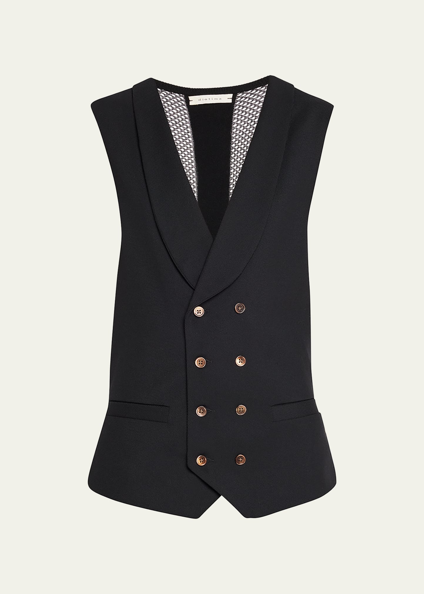 DIOTIMA King vest with milano mesh back Shawl collar; double-breasted Sleeveless Hip welt pockets Tailored fit Wool/viscose Dry clean Made in USA