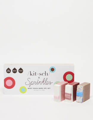 Face + Body by Kitsch Soak away the day Set of three body wash bars Designed to cleanse and soften skin Cake designs Includes red velvet, sprinkle and strawberry Develops into a creamy lather Presented in a branded gift box Product is non-returnable for hygiene reasons