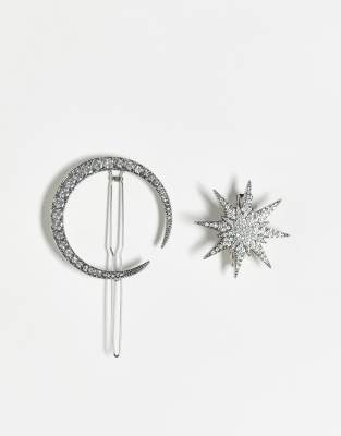Face + Body by Kristin Ess The finishing touch Pack of two Star and moon designs Rhinestone embellishment Snap-shut style Product is non-returnable for hygiene reasons