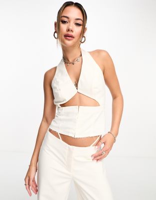 Tops by KYO Part of a co-ord set Pants sold separately V-neck Cut-out panel Concealed placket Regular fit