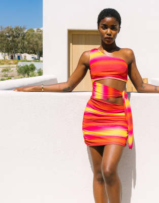 Labelrail x Eva Apio sunset heart detail cut-out mini dress in pink ombre