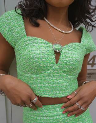 Labelrail x Pose and Repeat fitted top in green boucle with mini diamante heart clasp - part of a set