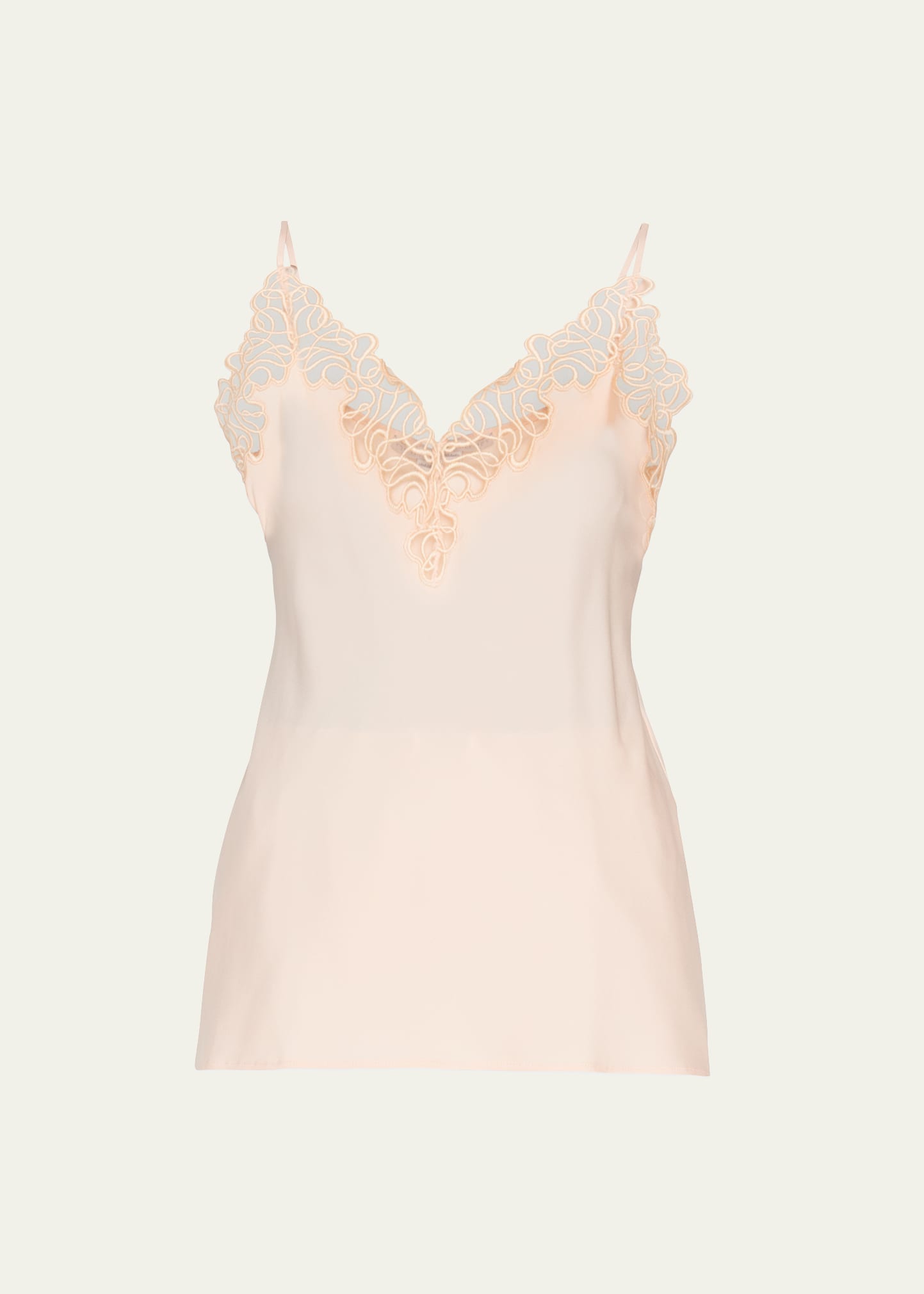 Stella McCartney cami with lace trim Scallop V neckline Adjustable shoulder straps Relaxed fit Slipover style Silk/elastane Made in Bulgaria