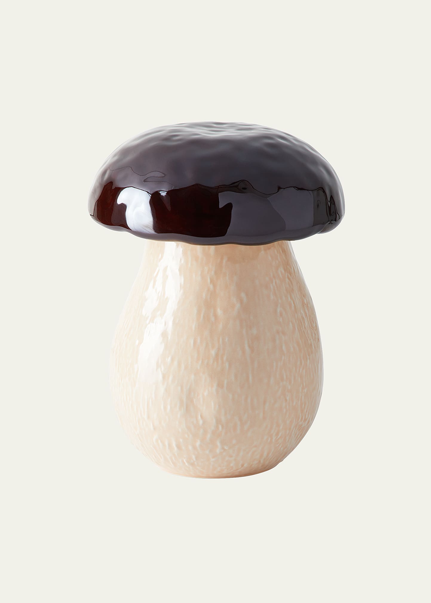 Handcrafted mushroom box. Hand-painted earthenware. 6.5"Dia. x 7.5"T. Dishwasher and microwave safe. Made in Portugal.