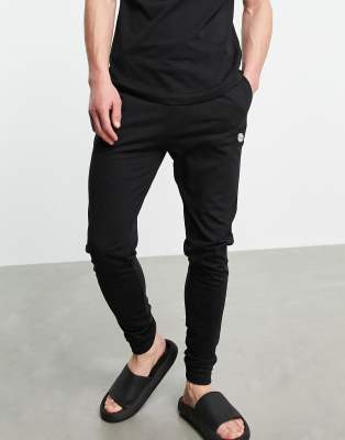 Le Breve lounge cuffed sweatpants in black with red band - part of a set