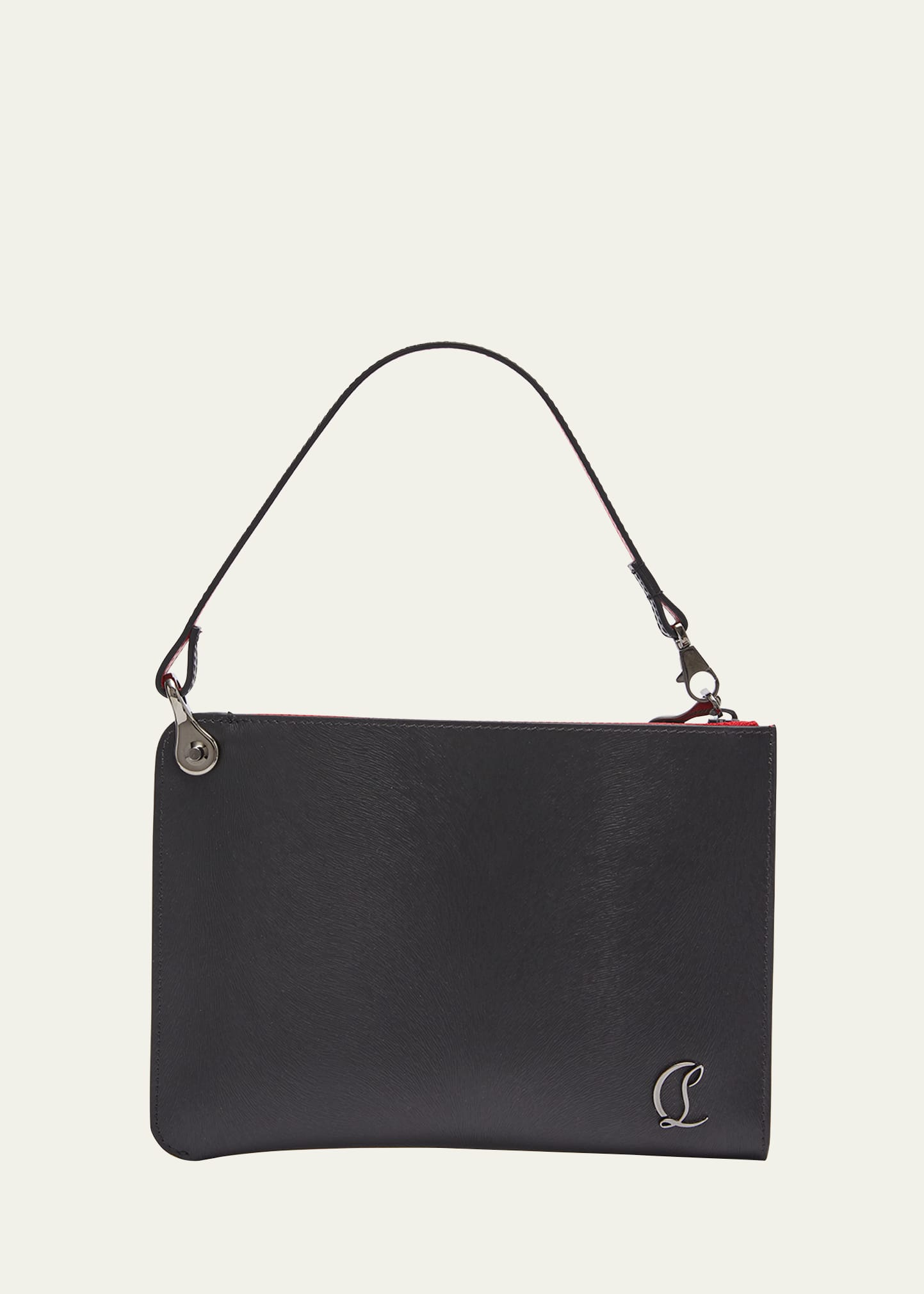 Christian Louboutin pouch top handle bag in leather Detachable flat top handle Zip top closure Signature red lining Approx. 5.5"H x 7.9"W x 1.5"D Made in Italy