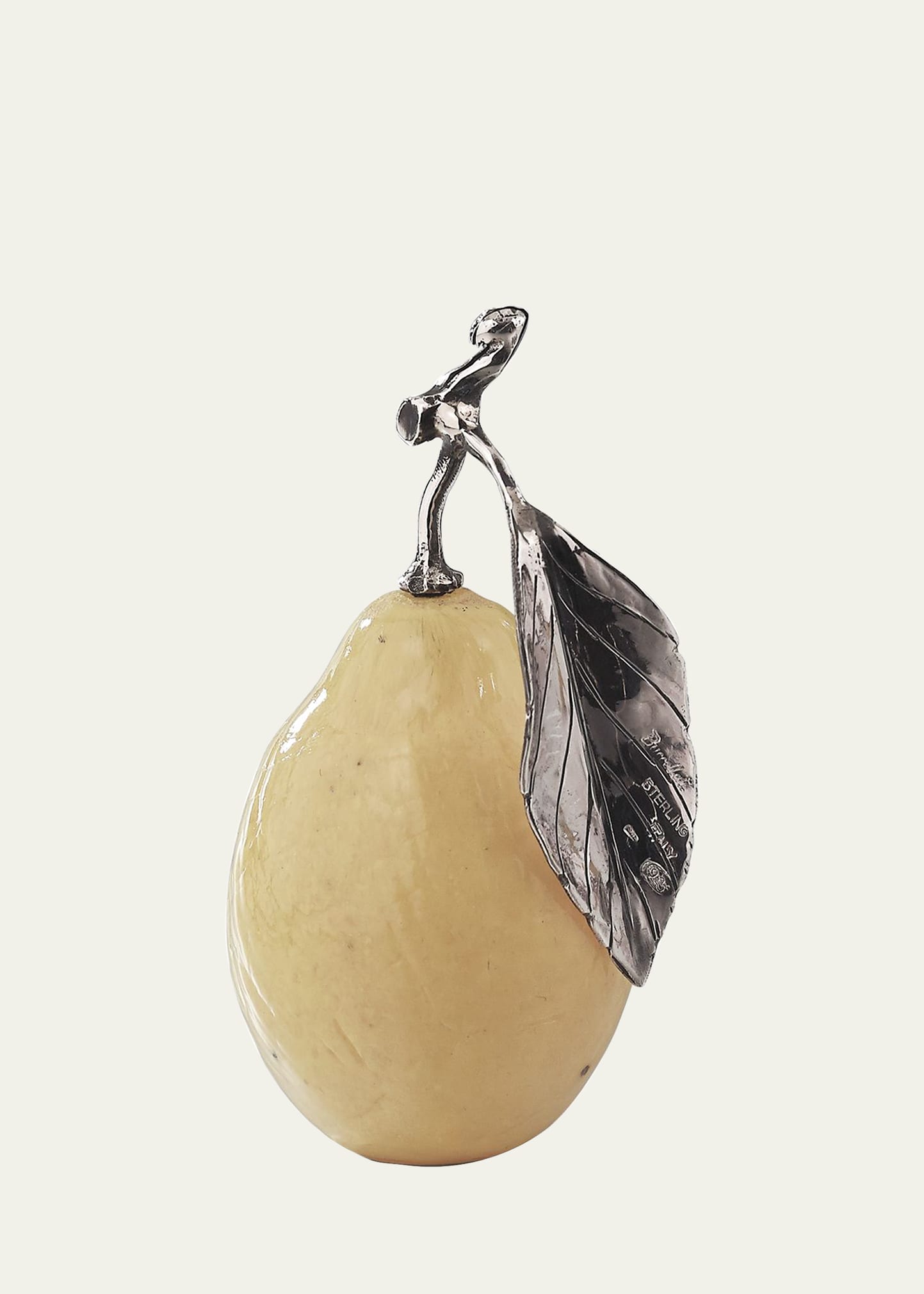 Lemon-shaped place card holder. Made of glass/sterling silver. Made in Italy.