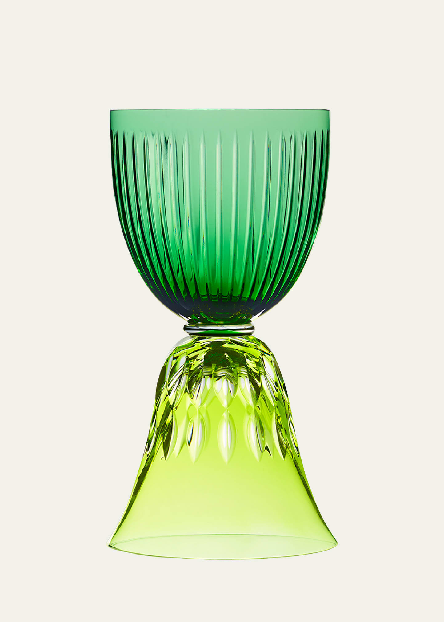 Taking the classic goblet and turning it upside-down, Les Endiablés is a versatile and fun way to serve drinks, gelato, and more from designer José Lévy. Each crystal piece is crafted with a simple half of hand-cut crystal which can serve as a base or cup for the other half of the glass which is rendered in a famous St. Louis motif. Hand-cut and mouthblown by the oldest crystal manufactory in France. Approx. 3.3"Dia Holds 7.4 oz Made in France