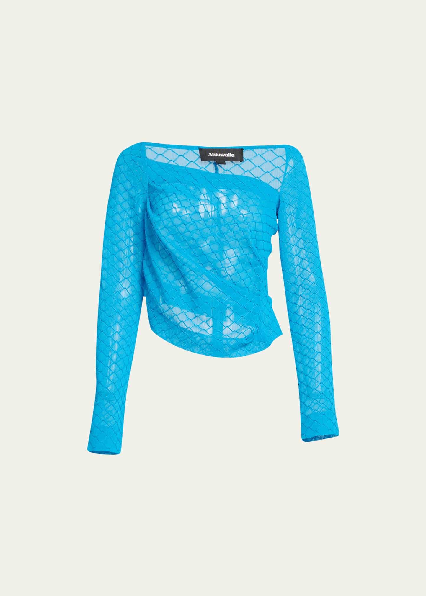 Ahluwalia "Lilah" draped top in a textured polyester Square neckline Long sleeves Slim fit Hem falls to the hip Back zipper Polyester Machine wash cold Imported