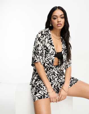 Tops by Lindex Part of a co-ord set Shorts sold separately All-over print Camp collar Button placket Relaxed fit