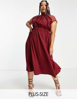 Liquorish Curve A-line lace detail midi dress in burgundy-Red