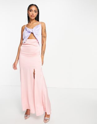 Liquorish satin twist front maxi dress with split in pastel floral-Multi