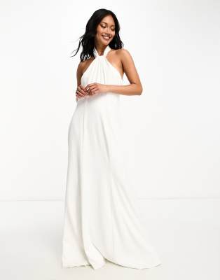 Little Mistress Bridal halterneck satin maxi dress in ivory-White