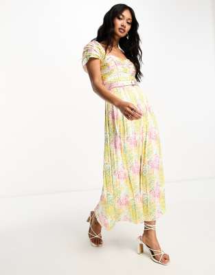 Little Mistress cap sleeve pleat midi dress in mixed floral-Multi