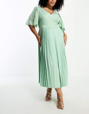 Little Mistress Plus plunge flutter sleeve midi dress in sage green
