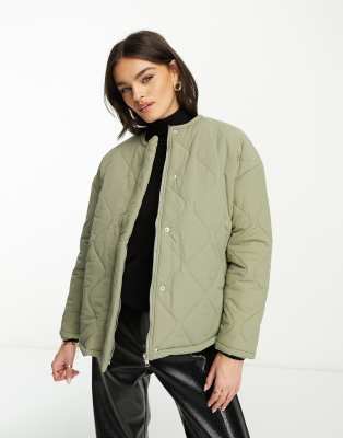 Jackets by Lola May Jacket upgrade: check Collarless style Snap placket Long sleeves Oversized fit