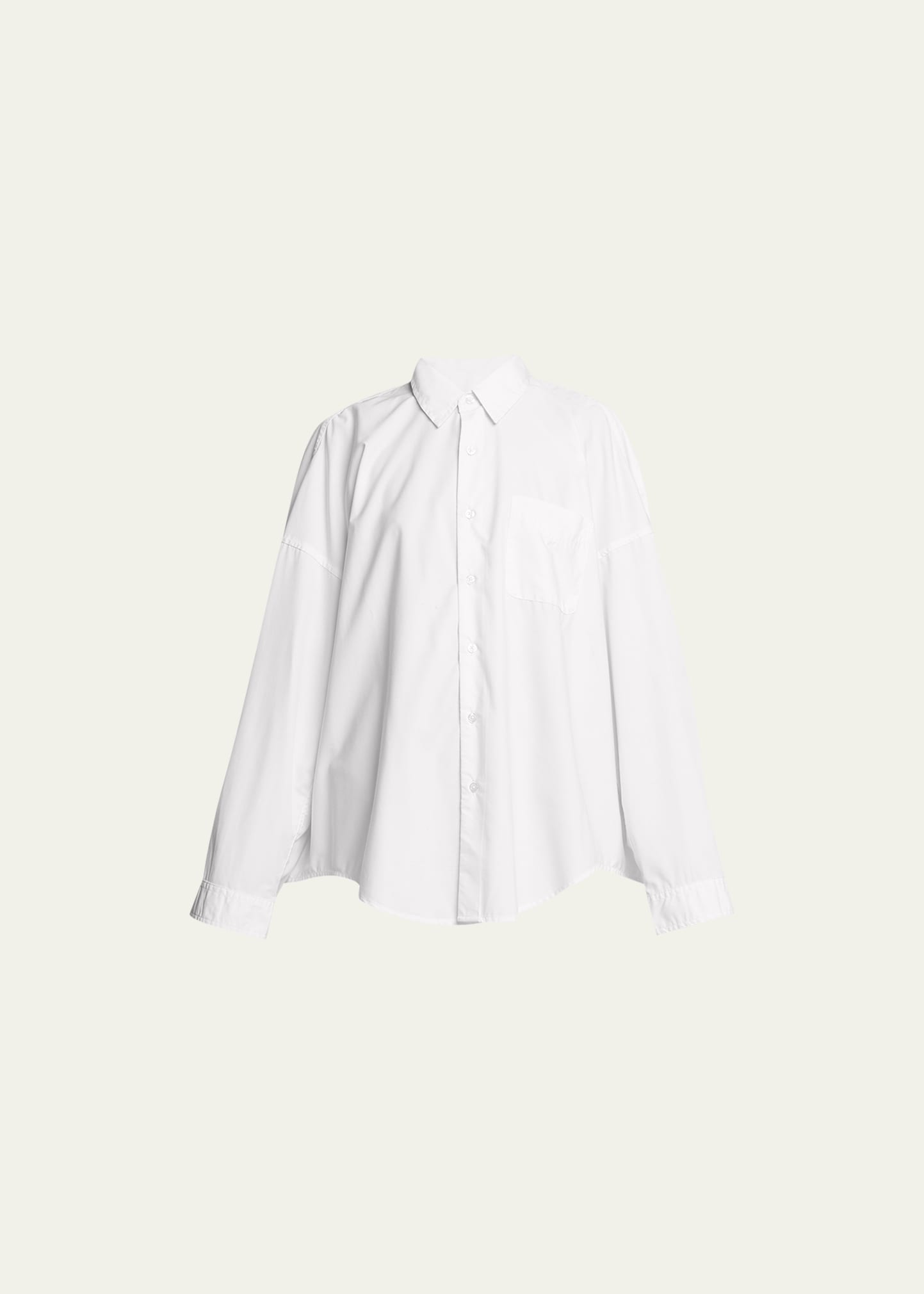 R13 cotton button-front shirt featuring dropped shoulders Point collar Long sleeves; button cuffs Relaxed silhouette Round hem Button-front closure Cotton Made in Italy