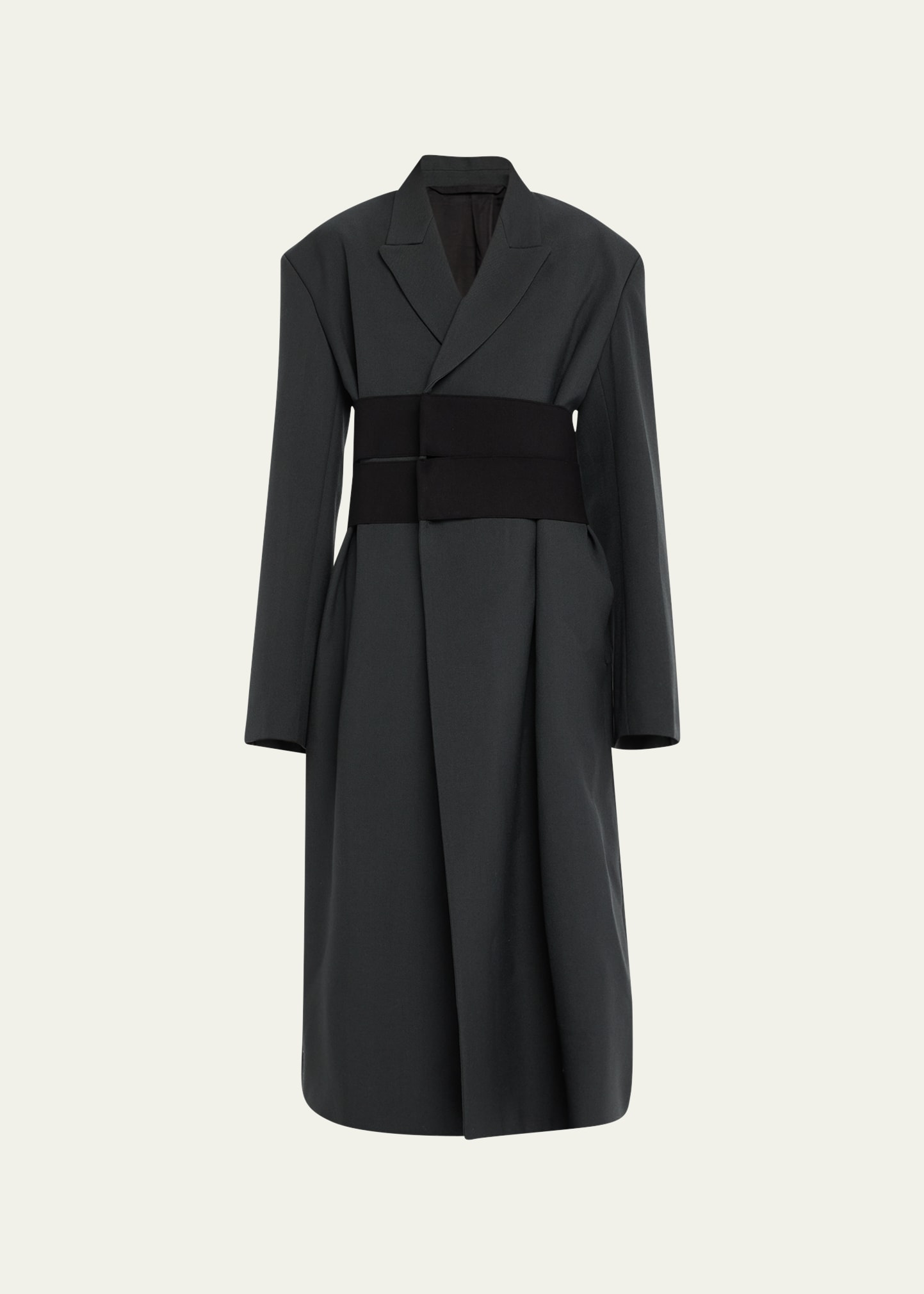 Quira tailored coat with contrast double strap detail Peak lapels Long sleeves Straight fit Long length Virgin wool Made in Italy