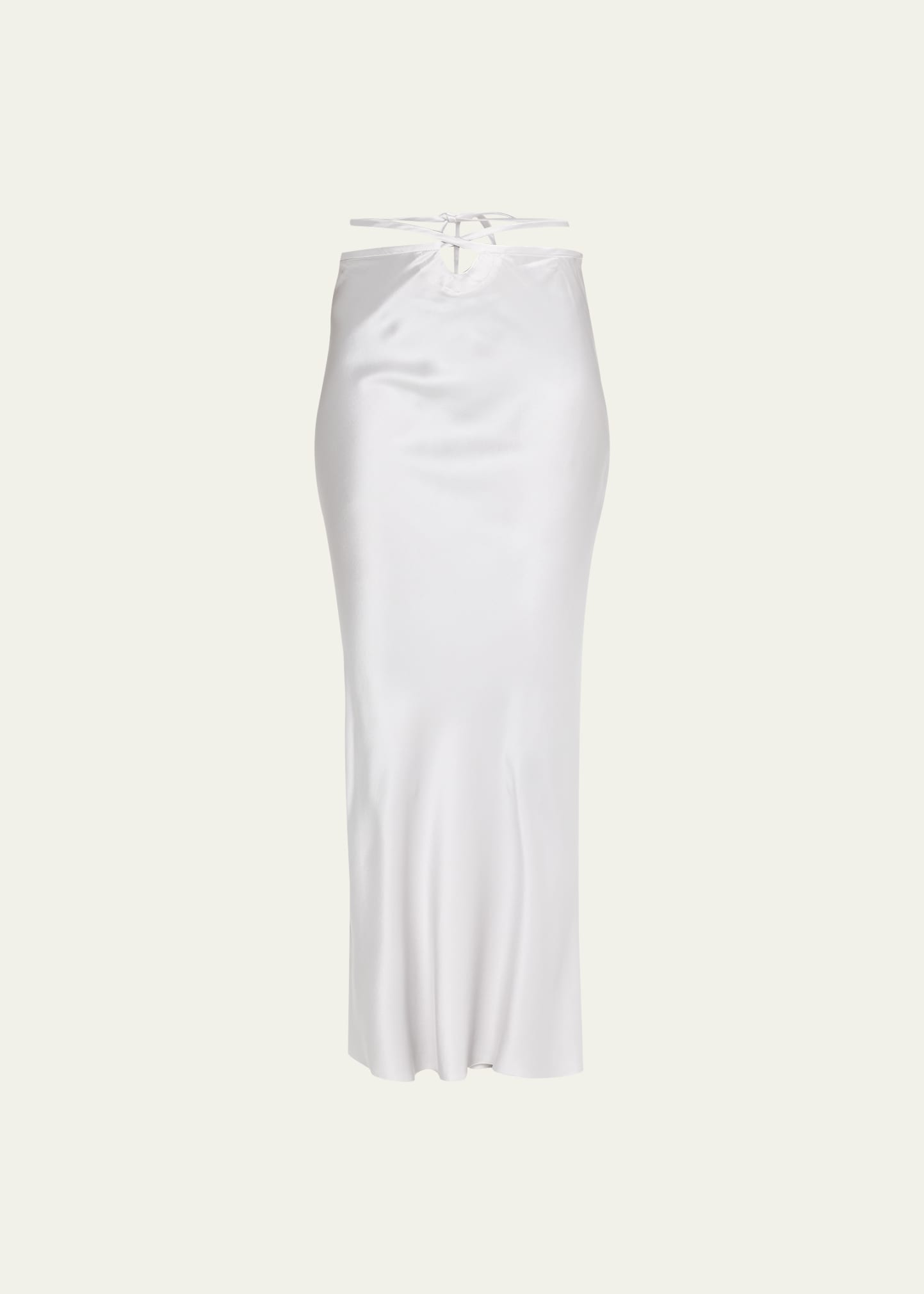 Christopher Esber silk skirt featuring crisscross loophole waist tie detail High waist Skirt falls straight from hip to hem Full length Invisible side zip Silk Imported