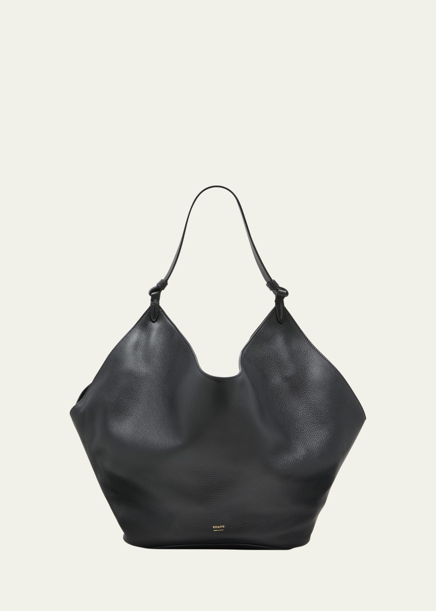 Khaite "Lotus" tote bag in leather Flat shoulder strap Open top Interior, leashed zip pouch bag Approx. 11.8"H x 26"W x 6.3"D Made in Italy