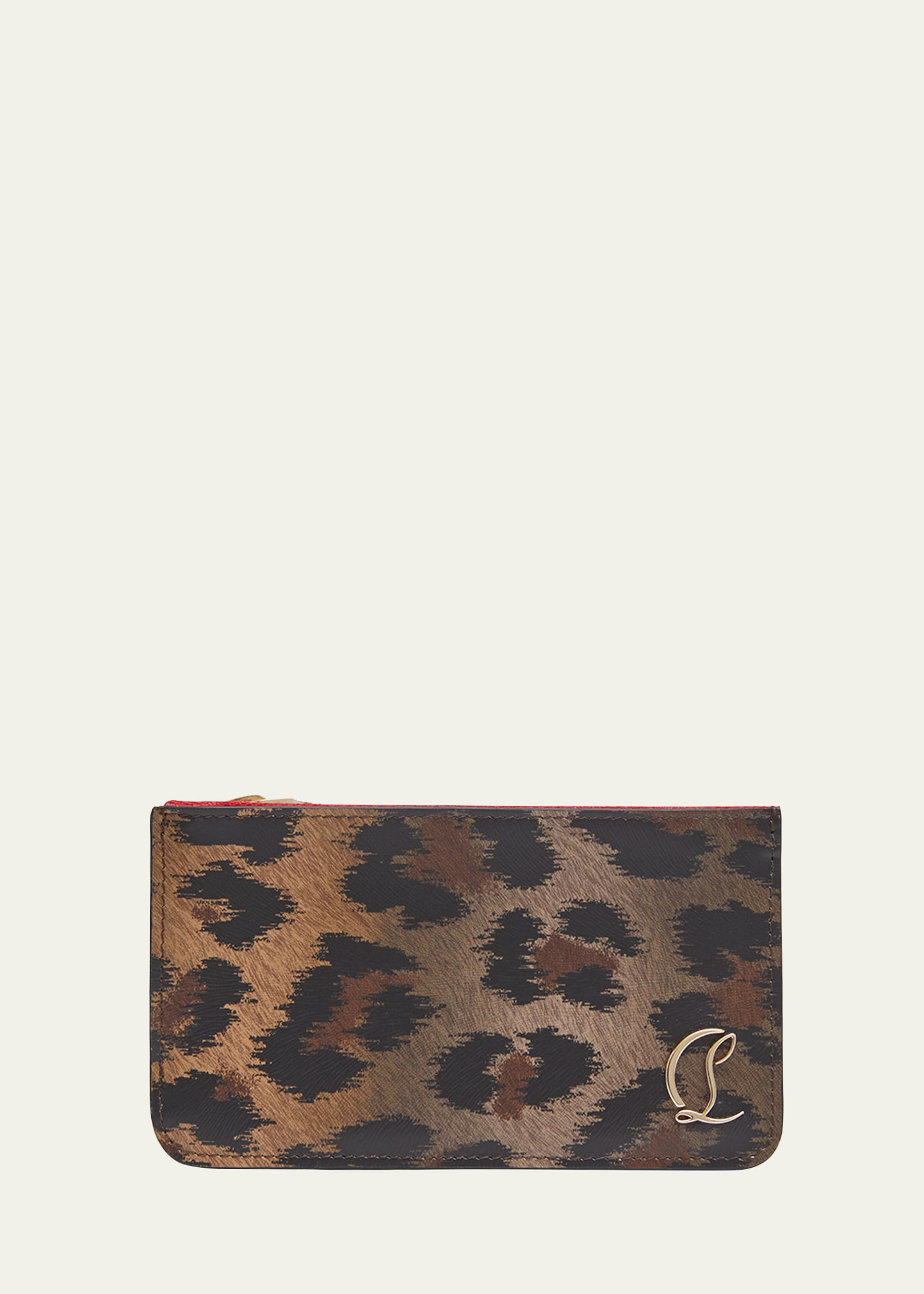 Christian Louboutin "Loubi54" card holder in leopard-print leather Features CL logo on side Zip top closure Exterior, five card slots and one slip pocket Signature red lining Approx. 3.1"H x 5.5"W x 0.4"D Made in Italy