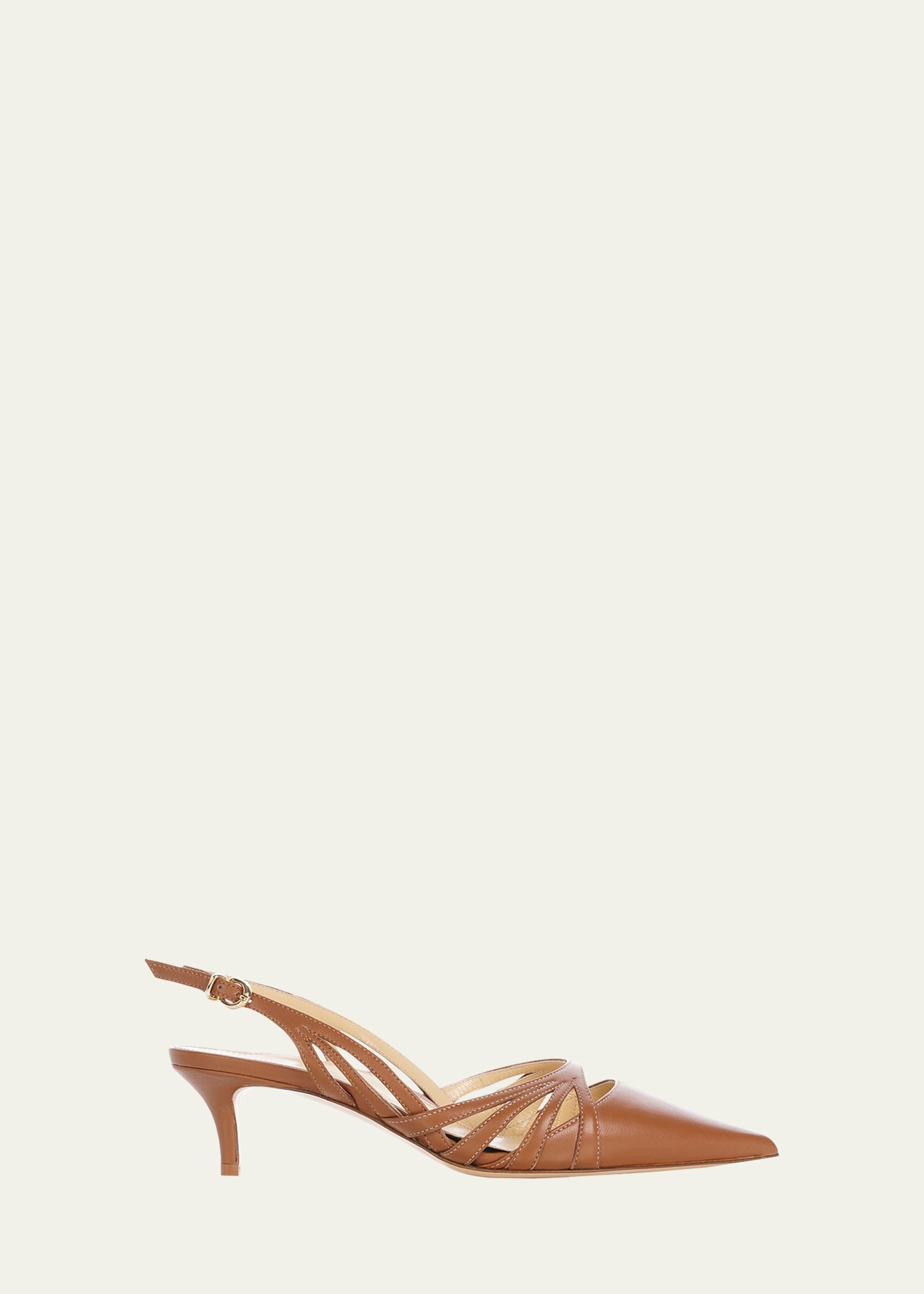 Marion Parke "Luisa 45" leather pumps 1.75 in / 45 mm kitten heel Pointed toe Slingback buckle ankle strap Triple I™ insole sculpts to the natural shape of the foot Lining: Leather Leather outsole Made in Italy