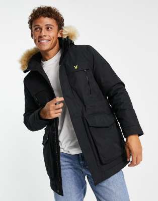 Jackets & Coats by Lyle & Scott Low-key layering Adjustable faux-fur hood Zip and snap fastening Logo patch Functional pockets Regular fit