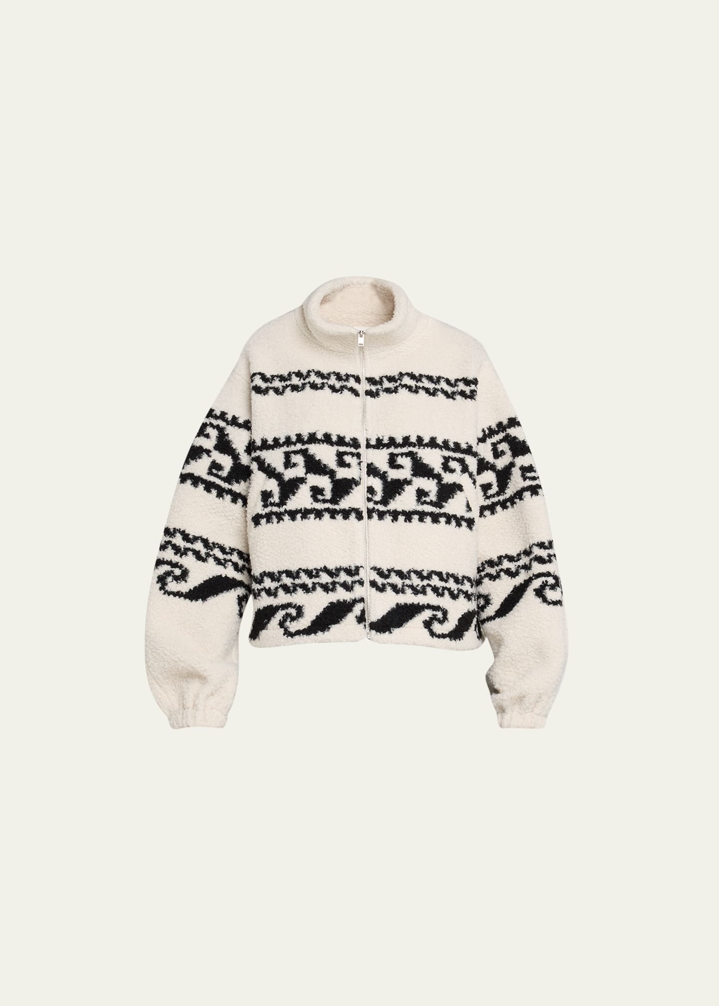 Etoile Isabel Marant "Mackensy" fuzzy alpaca-wool jacket featuring an abstract motif Stand collar Long sleeves Relaxed fit Zip front Wool/nylon/polyamide/elastane Lining: Cotton Imported