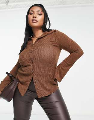 Tops by Mango Curve Love at first scroll Spread collar Button placket Long sleeves Regular fit