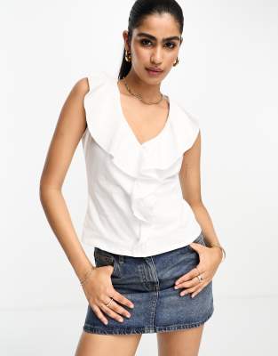 Tops by Mango Introduce it to your other nice tops V-neck Sleeveless style Ruffle trim Regular fit