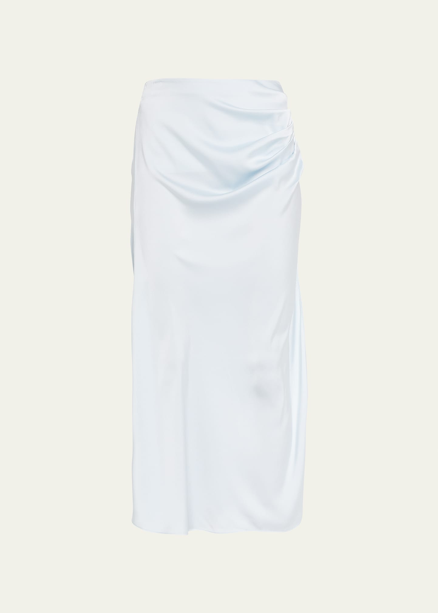 Jonathan Simkhai Standard "Marguerite" charmeuse skirt with ruching Sits at the natural waist Hem falls below the knee Straight silhouette Polyester Dry clean Imported