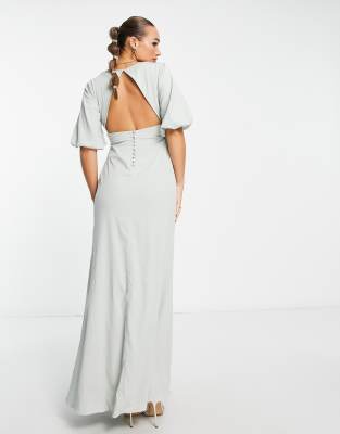 Dresses by Maya Bride approved Round neck Puff sleeves Open back with button closure Button placket to reverse Regular fit