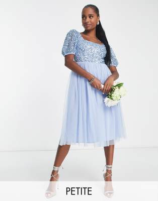 Maya Petite Bridesmaid puff sleeve square neck midi dress in baby blue