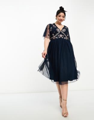 Dresses by Maya Plus There's dressing up, then there's this V-neck Flutter sleeves Bead and sequin embellished Zip-back fastening Regular fit