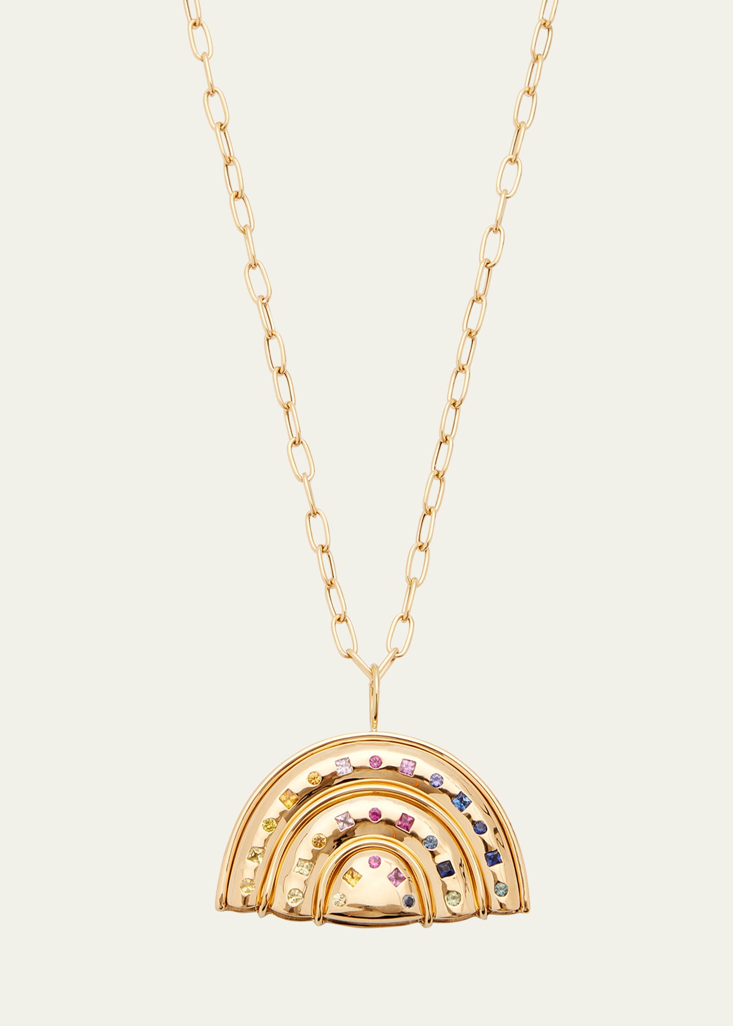 Brent Neale necklace Approx. 32" length 18-karat yellow gold Features a polished finish Rainbow pendant with multicolor sapphires Total carat weight: 1.48 Lobster clasp Made in USA