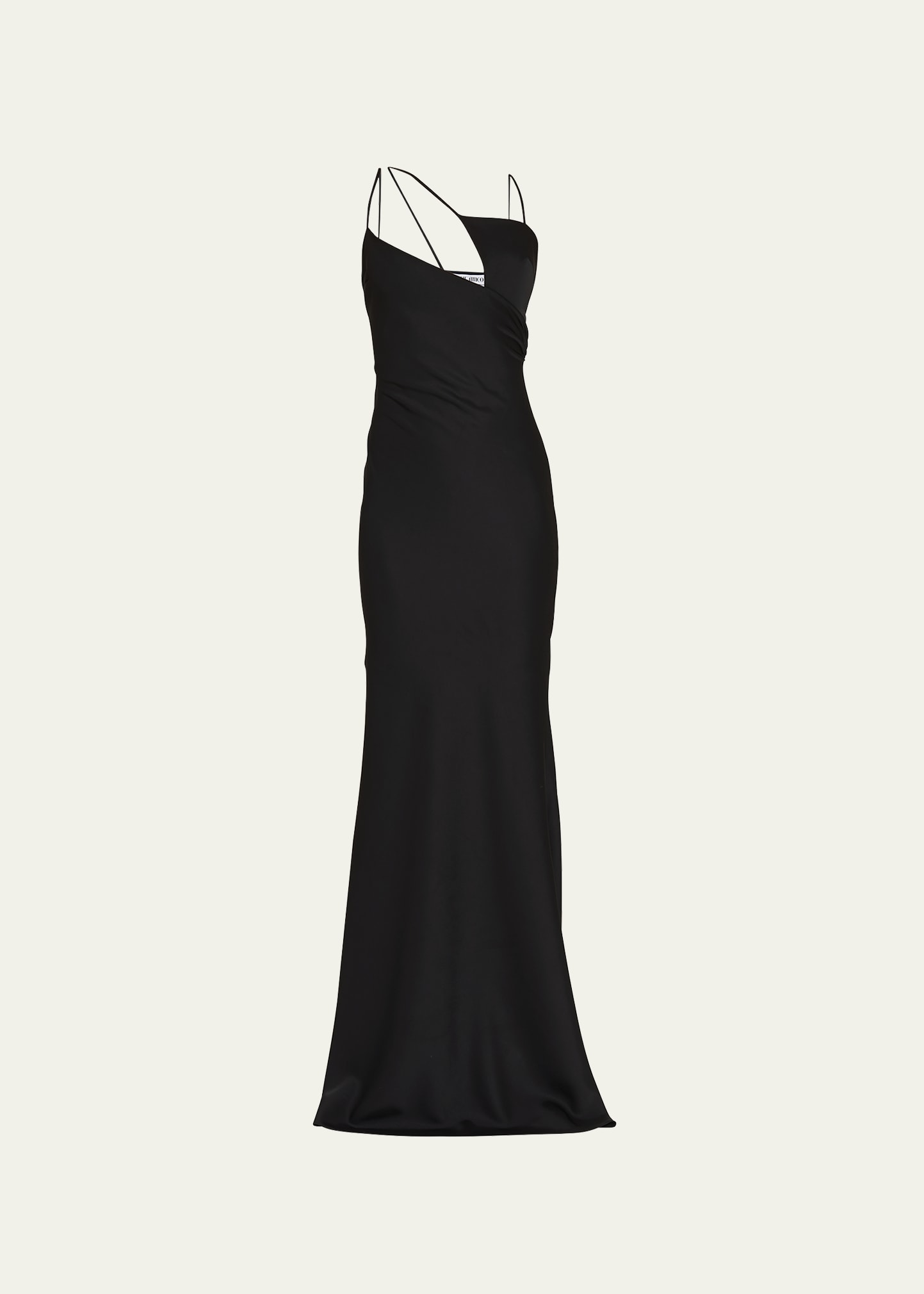 The Attico "Melva" dress with cutout detail Asymmetric neckline Spaghetti straps A-line silhouette Floor length Back zip Polyester self/lining Made in Italy