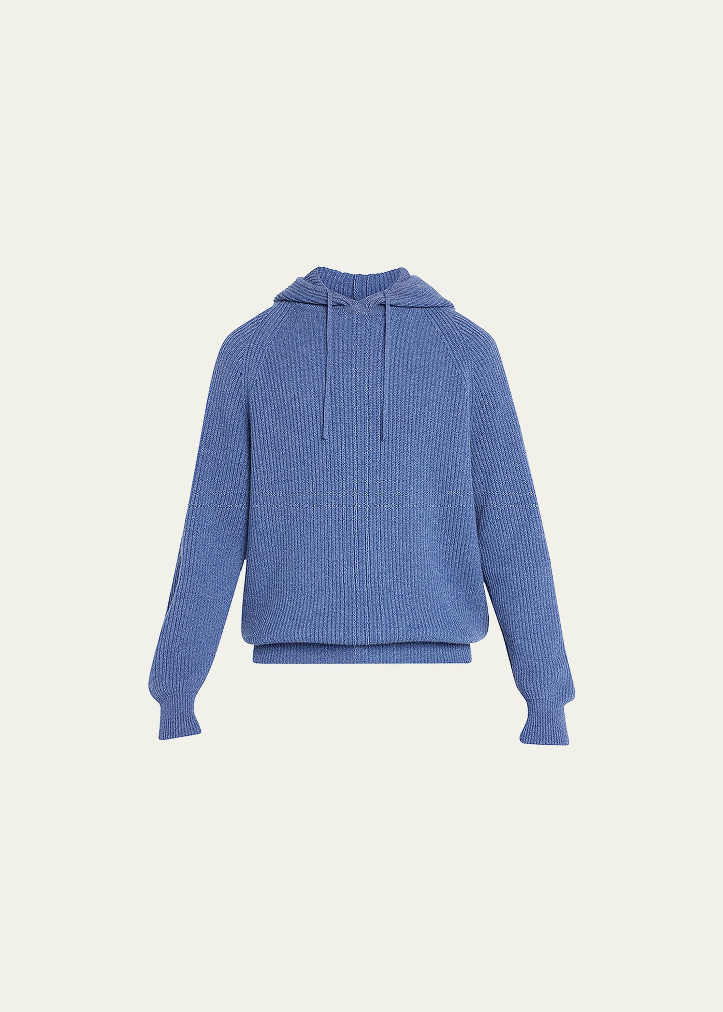 Bergdorf Goodman hoodie in premium 7 gauge rib cashmere fabric Hooded drawstring neckline Long sleeves Ribbed cuffs and hem Pullover style Model is 6'1" Classic fit Made in Italy