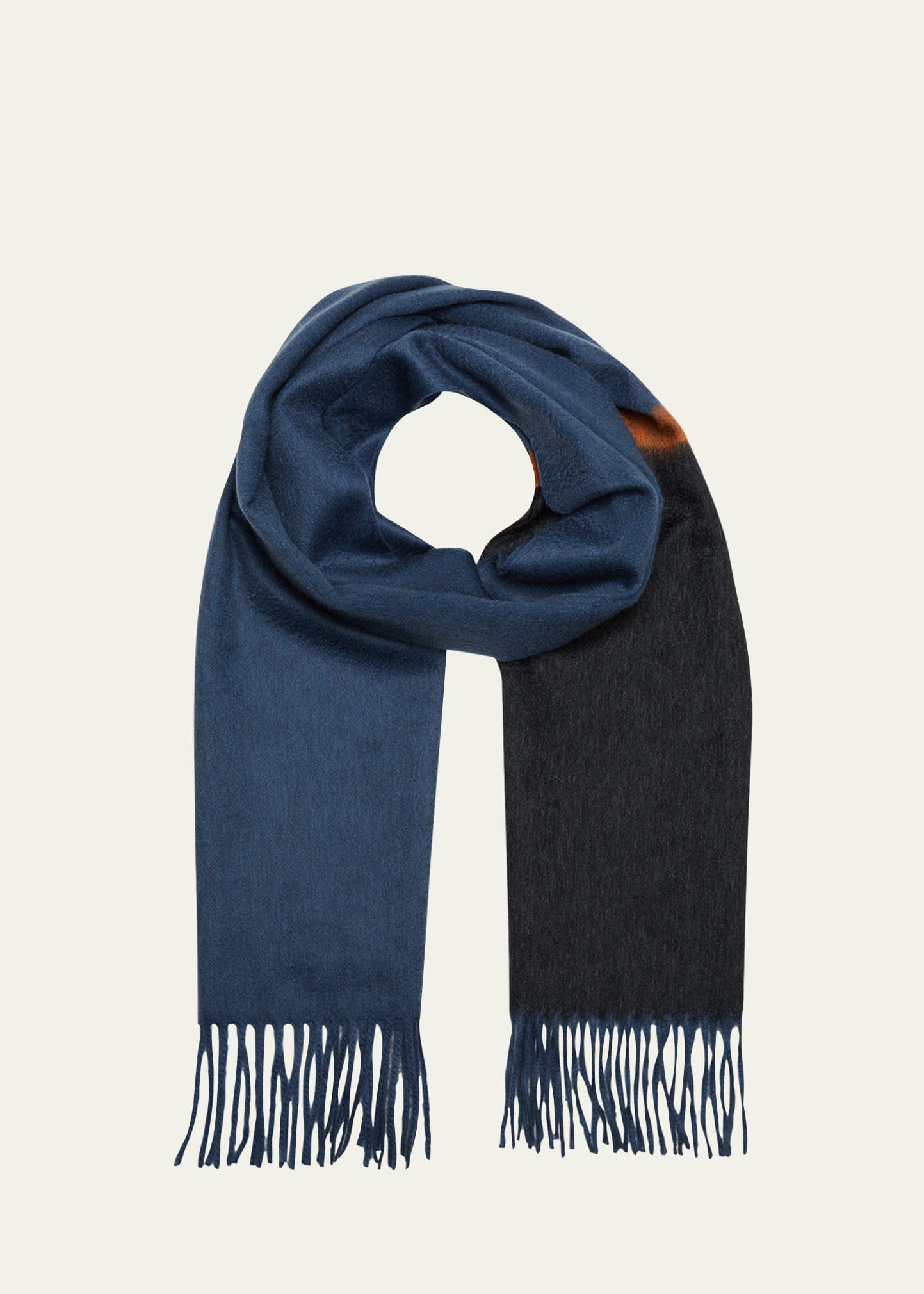 Begg & Co "Arran" scarf features a color block print motif Approx. 14"L x 72"H May be styled multiple ways Fringe ends Cashmere Made in United Kingdom