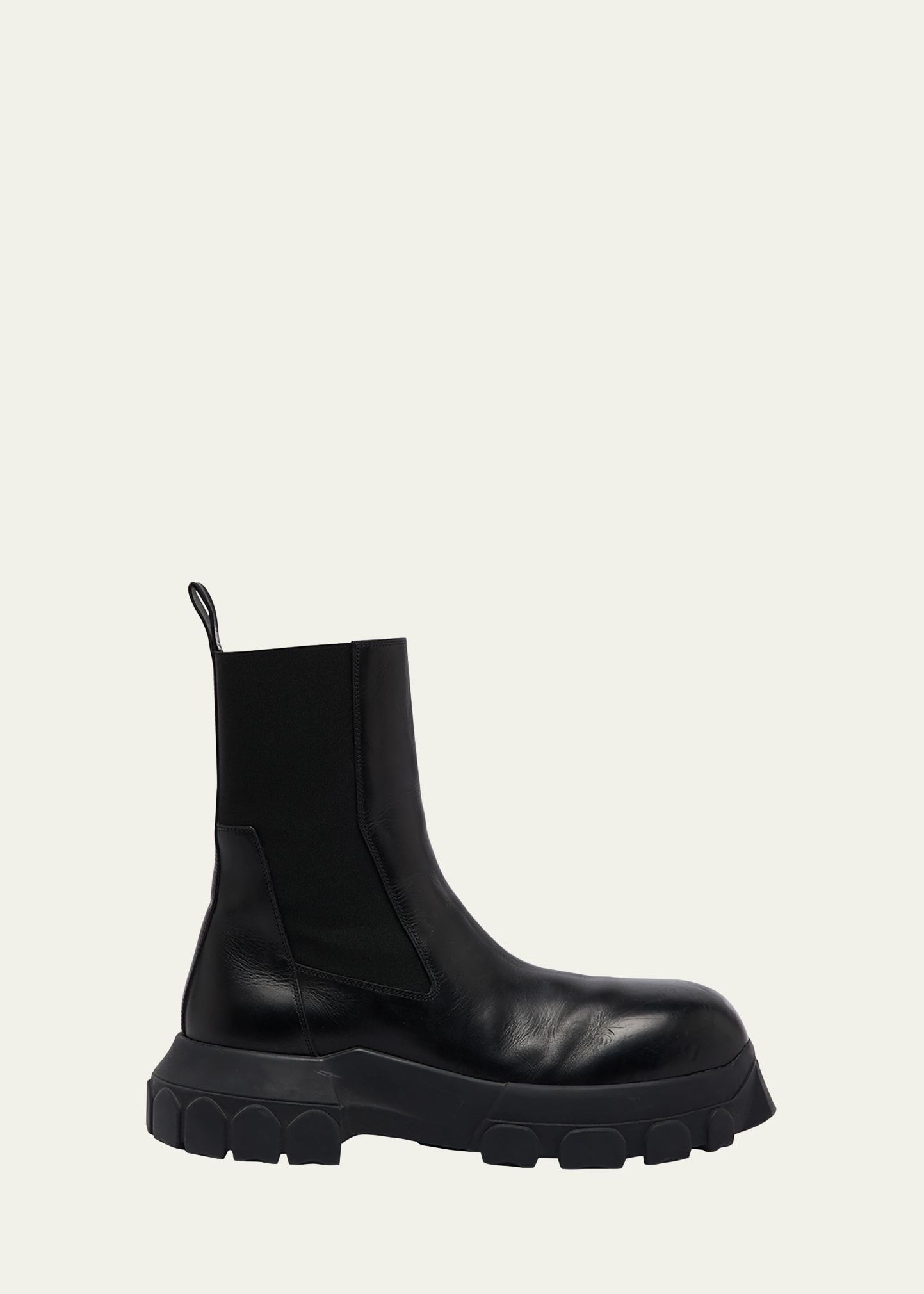 Rick Owens "Beatle Bozo Tractor" chelsea boots in premium calf leather Chunky heel Round toe Tonal gored elastic inserts at sides Leather lining Pull tab at backstay Chunky sole Pull-on style Made in Italy