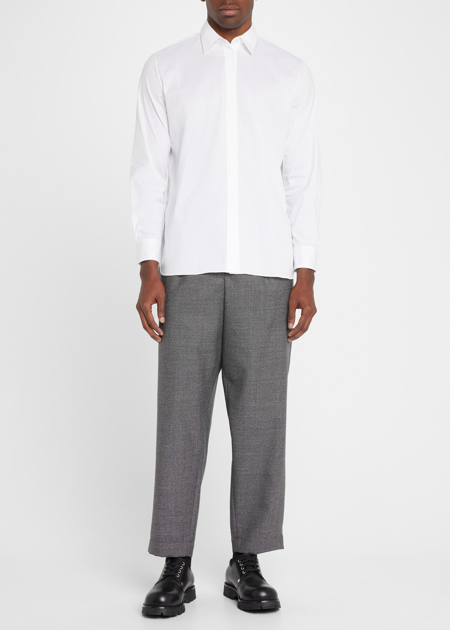 Marni pants in birdseye weave Elasticized waist Pleated front Side slip pockets Back welt pockets Cropped at the ankle Relaxed, tapered legs Button closure/zip fly; belt loops Virgin wool/cotton/nylon Partially lined Dry clean Made in Italy