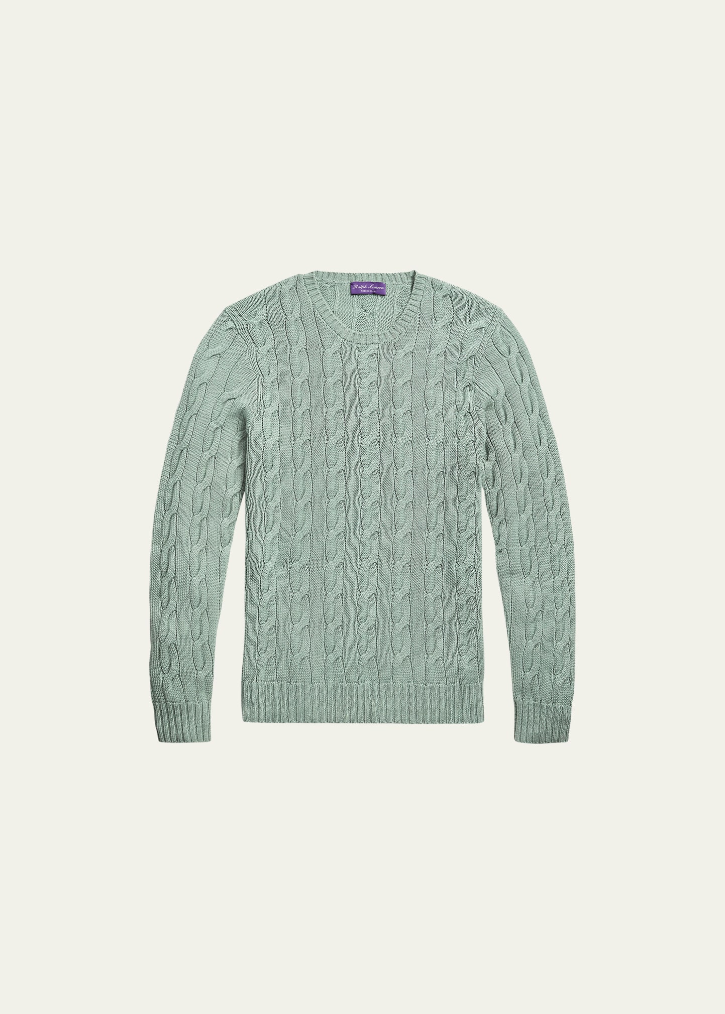 Ralph Lauren Purple Label sweater crafted from cashmere meticulously combed from goats raised in the mountains of Mongolia resulting in an ultra-soft under-fleece Crew neckline Long sleeves Ribbed cuffs and hem Pullover style Cashmere Made in Italy