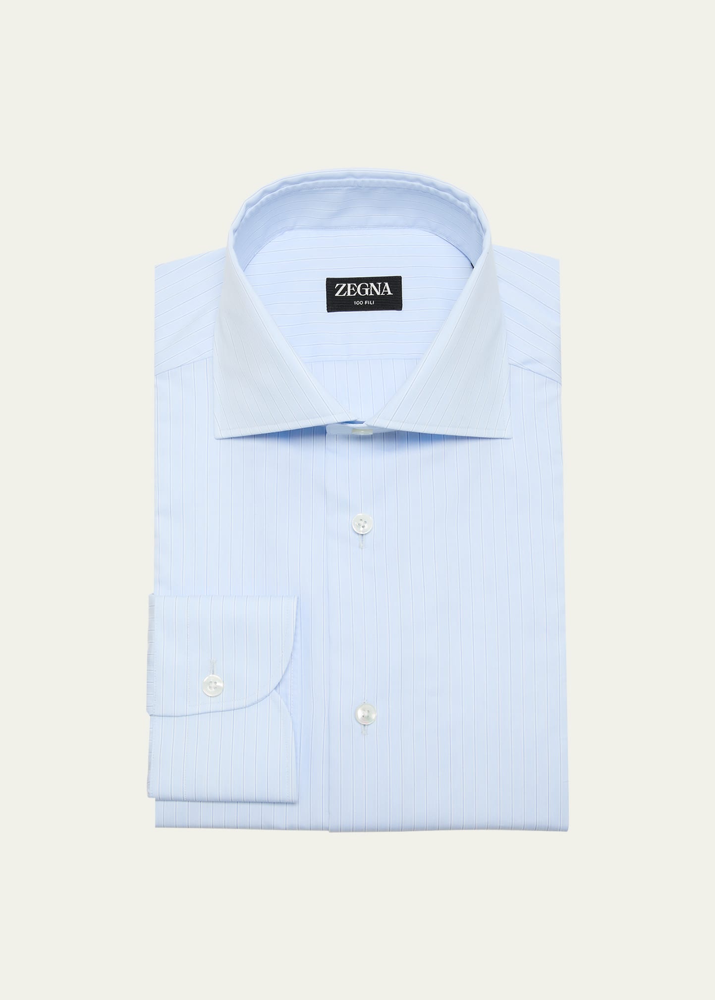 ZEGNA dress shirt with an allover hairline stripe print Point collar; button placket Long sleeves Round barrel cuffs Yoked back shoulders Shirttail hem Cotton Made in Italy