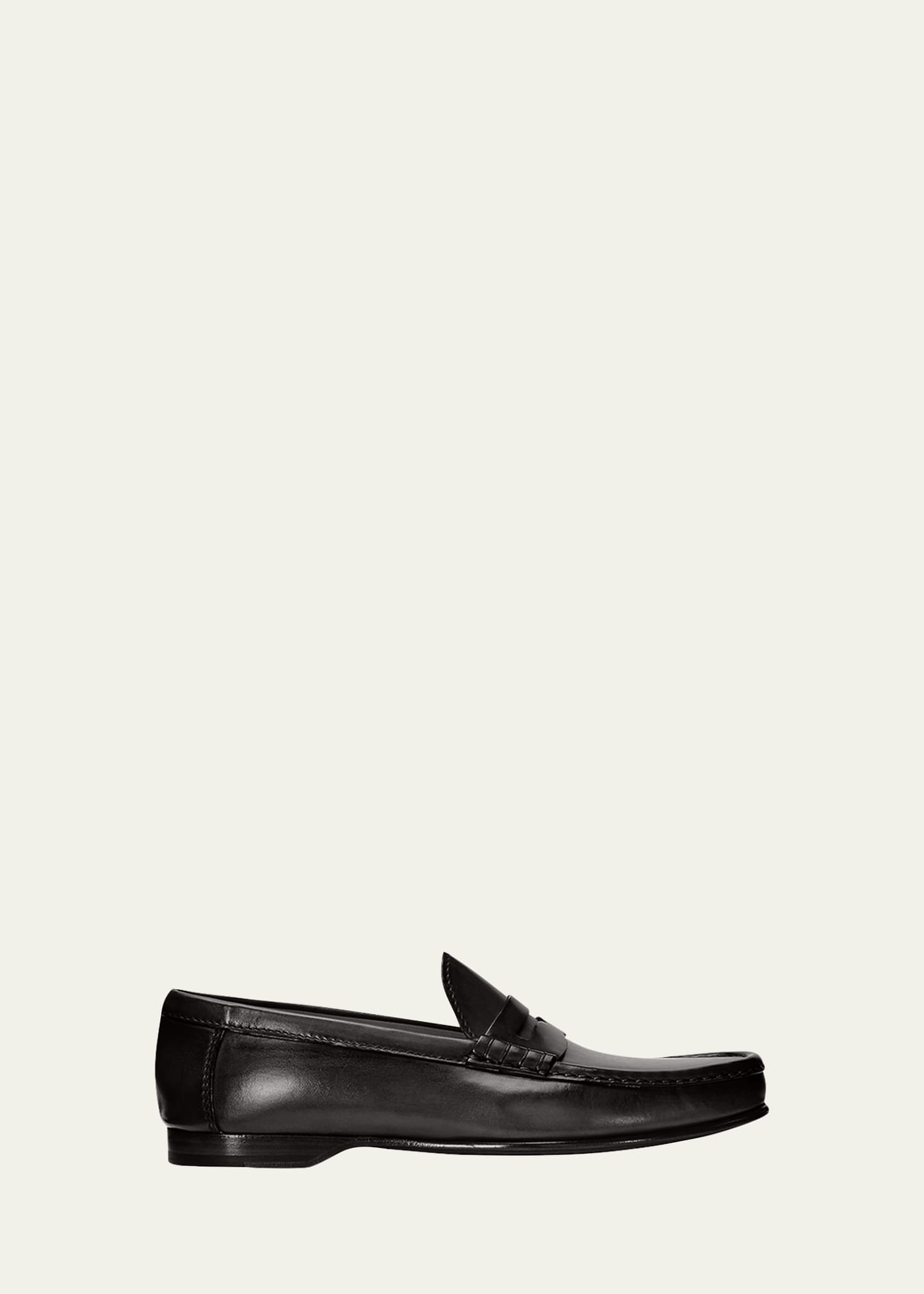 Ralph Lauren Home "Chalmers" penny loafers in premium smooth leather Stacked heel Round moc toe Penny keeper strap at vamp Slip-on style Made in Italy