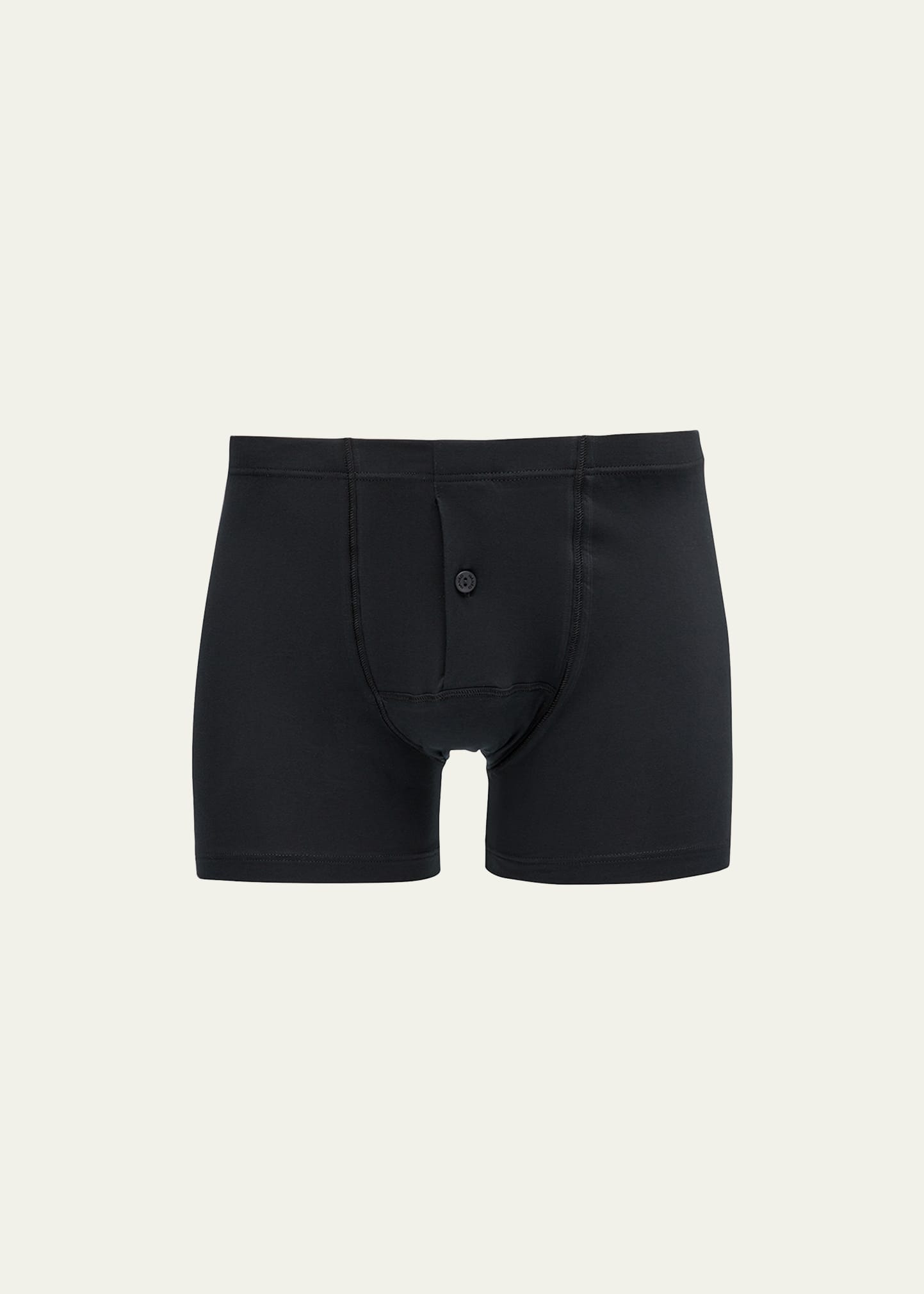 Hanro boxer brief underwear in a blend of superior PIMA cotton with a touch of elastane for stretch. Button fly and lined pouch for comfort. Longer leg for a more flattering profile, especially on taller men. Signature HANRO logo on soft, elastic waistband. Cotton/Lycra® spandex. Made in Portugal.